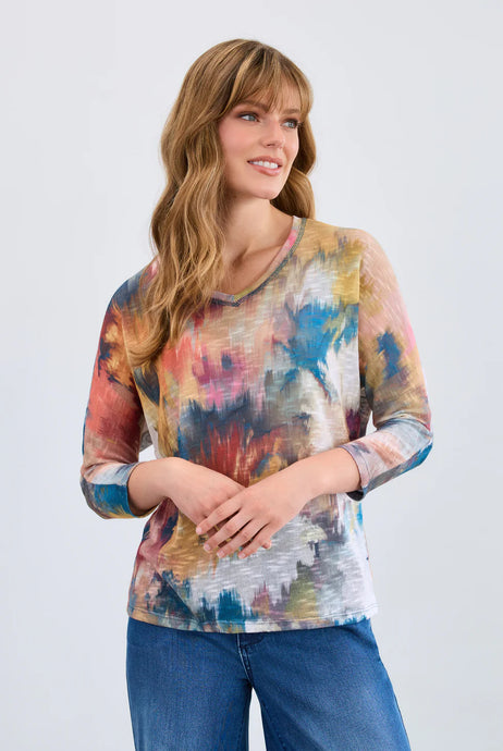 FDJ 3514964 SPECTRAL PRINT VNECK TOP SS25