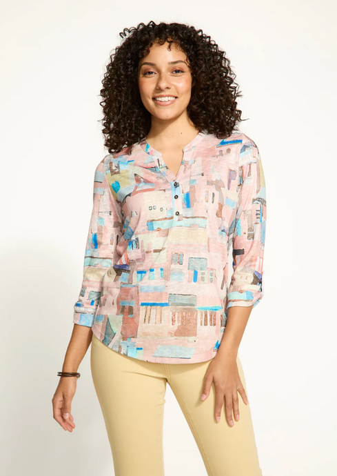 FDJ 3305451 Printed Long Sleeve Notch Neck Top FW23