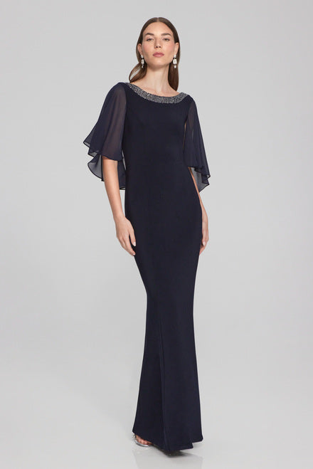 Joseph Ribkoff 241717 Silky Knit and Chiffon Trumpet Gown