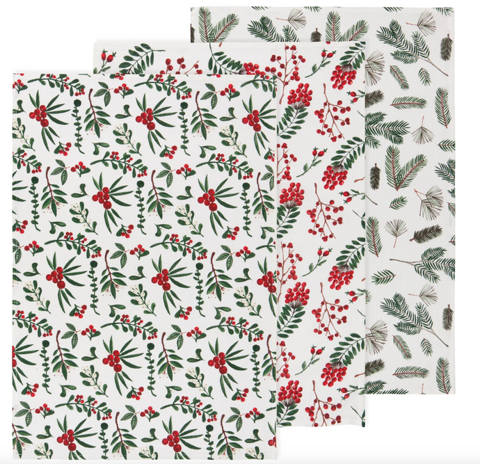 Winterberry Bakers Floursack Dishtowels Set of 3