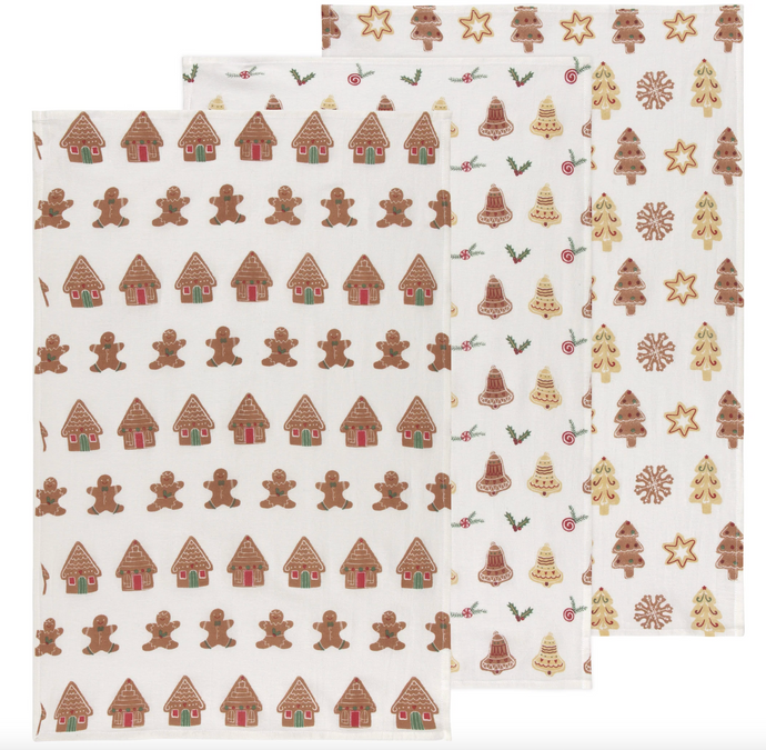 Tea Towels set of 3 Bakers Flour Xmas Cookies