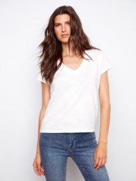 Organic Cotton Drop Shoulder V-Neck T-Shirt